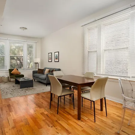 A full kitchen with a microwave, a refrigerator, and kitchenware is available in the apartment, along with coffee and tea making facilities. The 1-bedroom apartment is within easy reach of Damen & Augusta bus station.