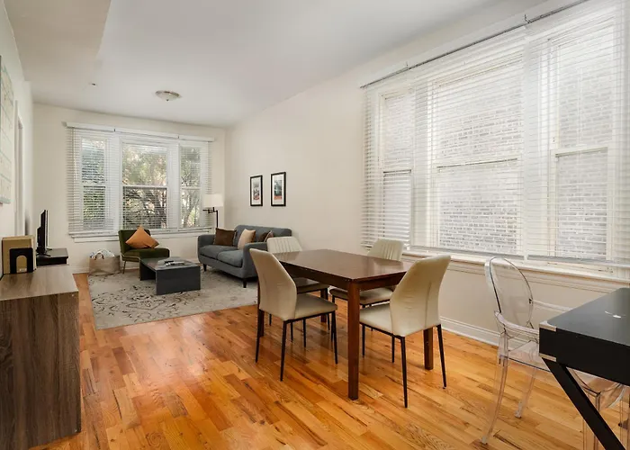 O apartamento Flexhome Wicker Park 3Br Dv1 - Read Info oferece cozinha totalmente equipada, bem como quartos com secretária, equipamentos para chá e café, internet de alta velocidade. Esta apartamento está a 7 km de Cais Naval, enquanto Aquário de Shedd é de 8 km de distância.